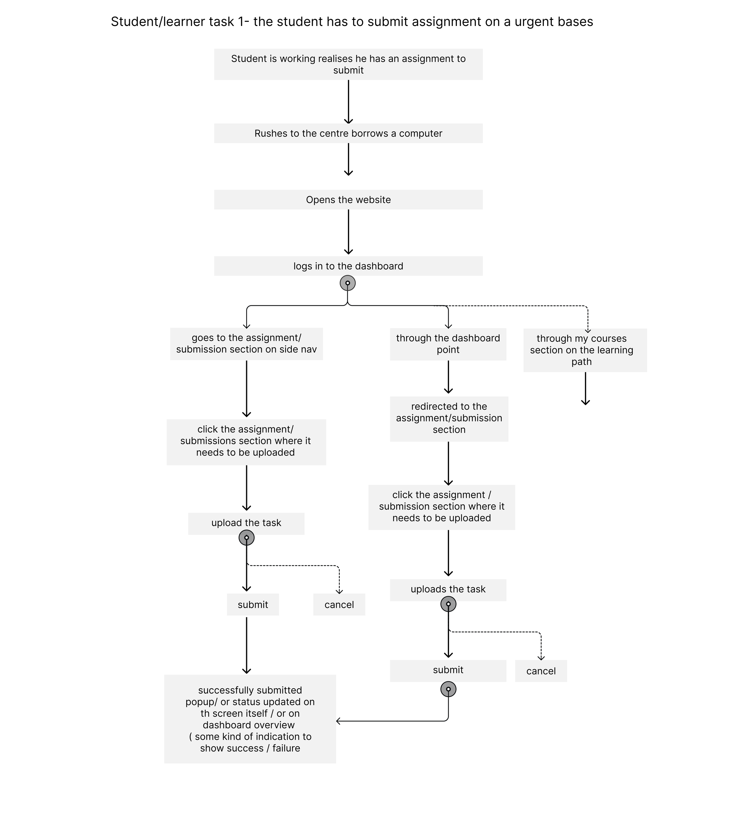 The process began with brainstorming sessions to identify pain points and task flows in students' daily routines. Based on these insights, new, optimized workflows were developed to enhance learning practices and improve overall user experience.
